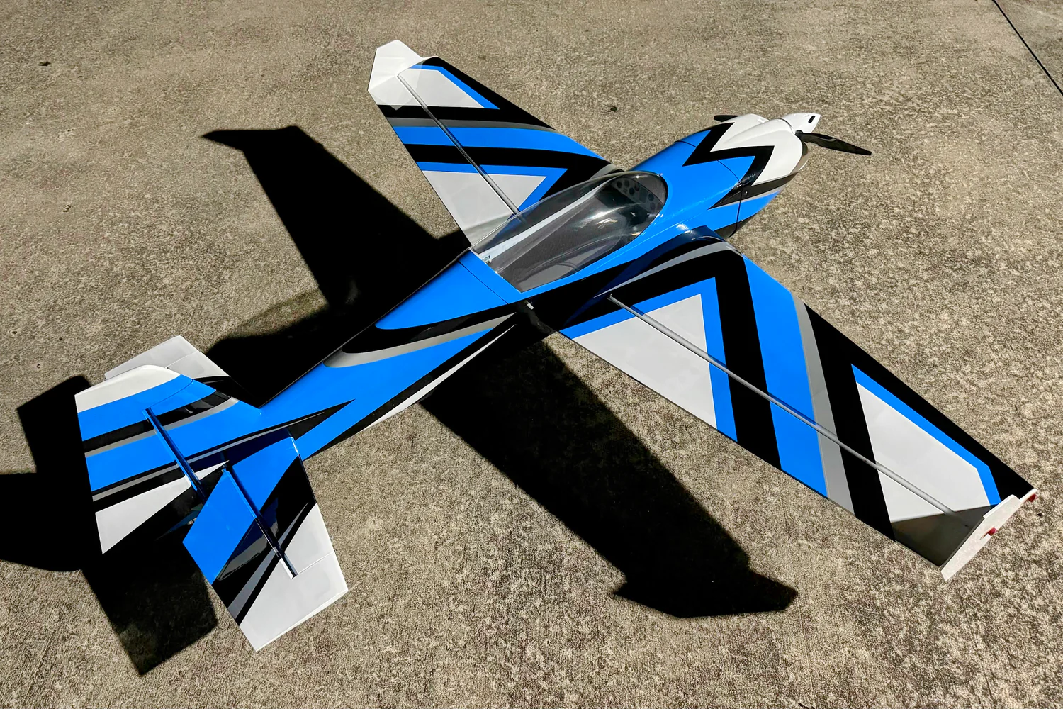 67インチ Extra NG を小型化したかのようなしっかりした作りで、カーボン製ウイングチューブ、カーボン製ランディングギア、Ultracote カバーリング、クイックラッチ式の主翼、リアルなコックピット仕上げ、ジオメトリック・スリップイン式水平尾翼(組立と調整が容易)、あらかじめヒンジ処理された主翼と水平尾翼、競技グレードのボールリンクハードウェア(プレ組立済)、冷却用バッフルの組み込み済み、その他多くのプレファブ部品が組み立て時間を大幅に短縮します。