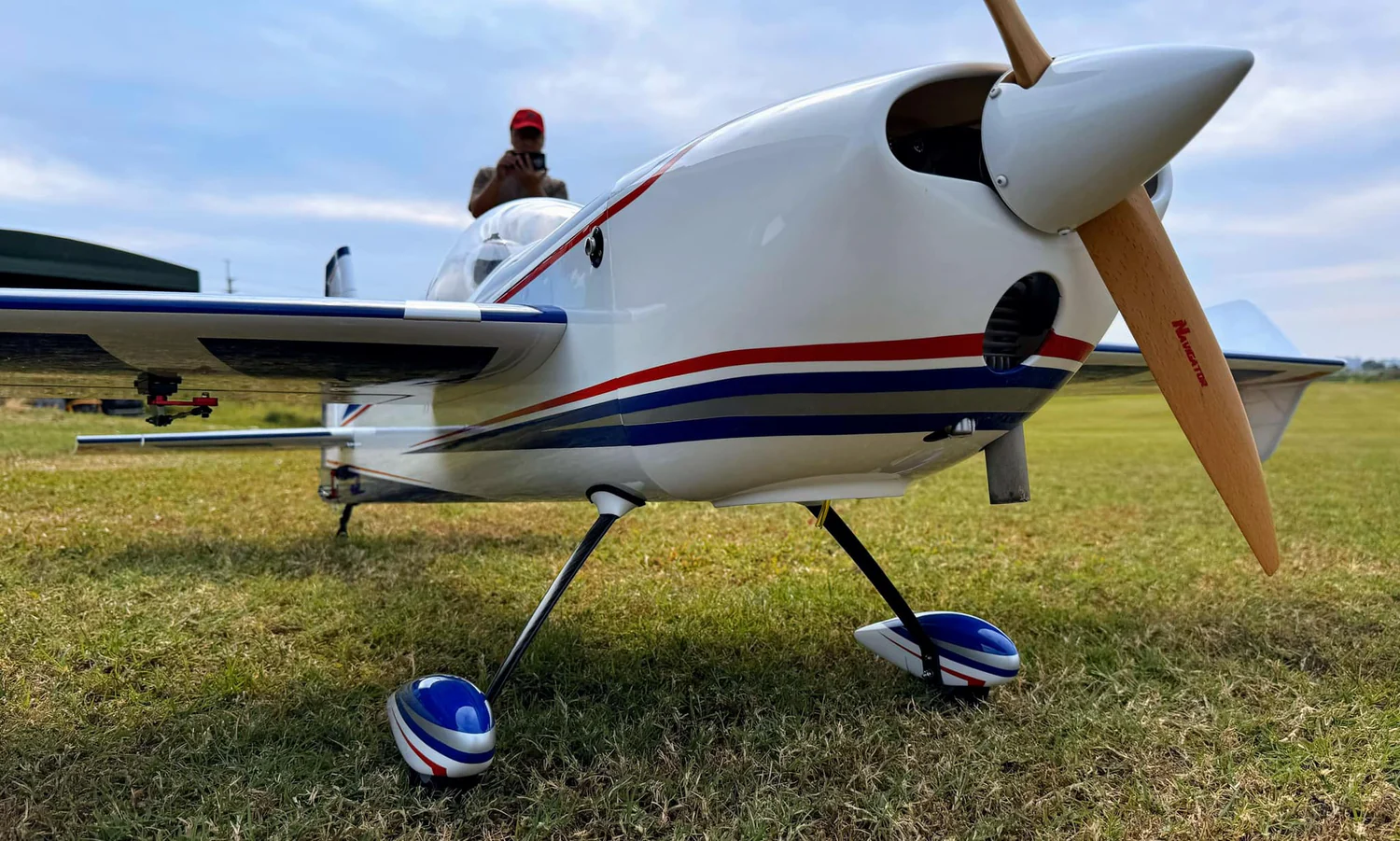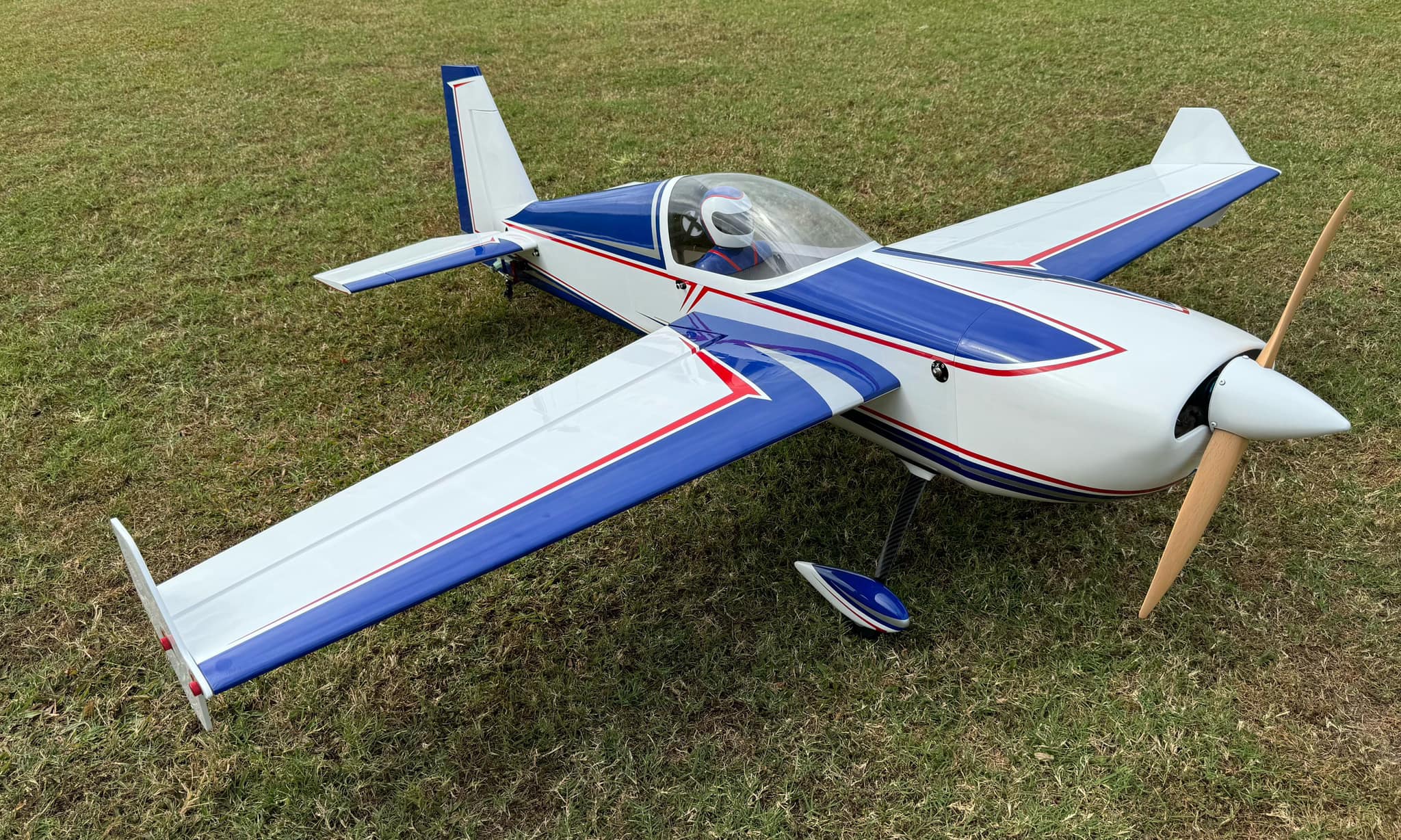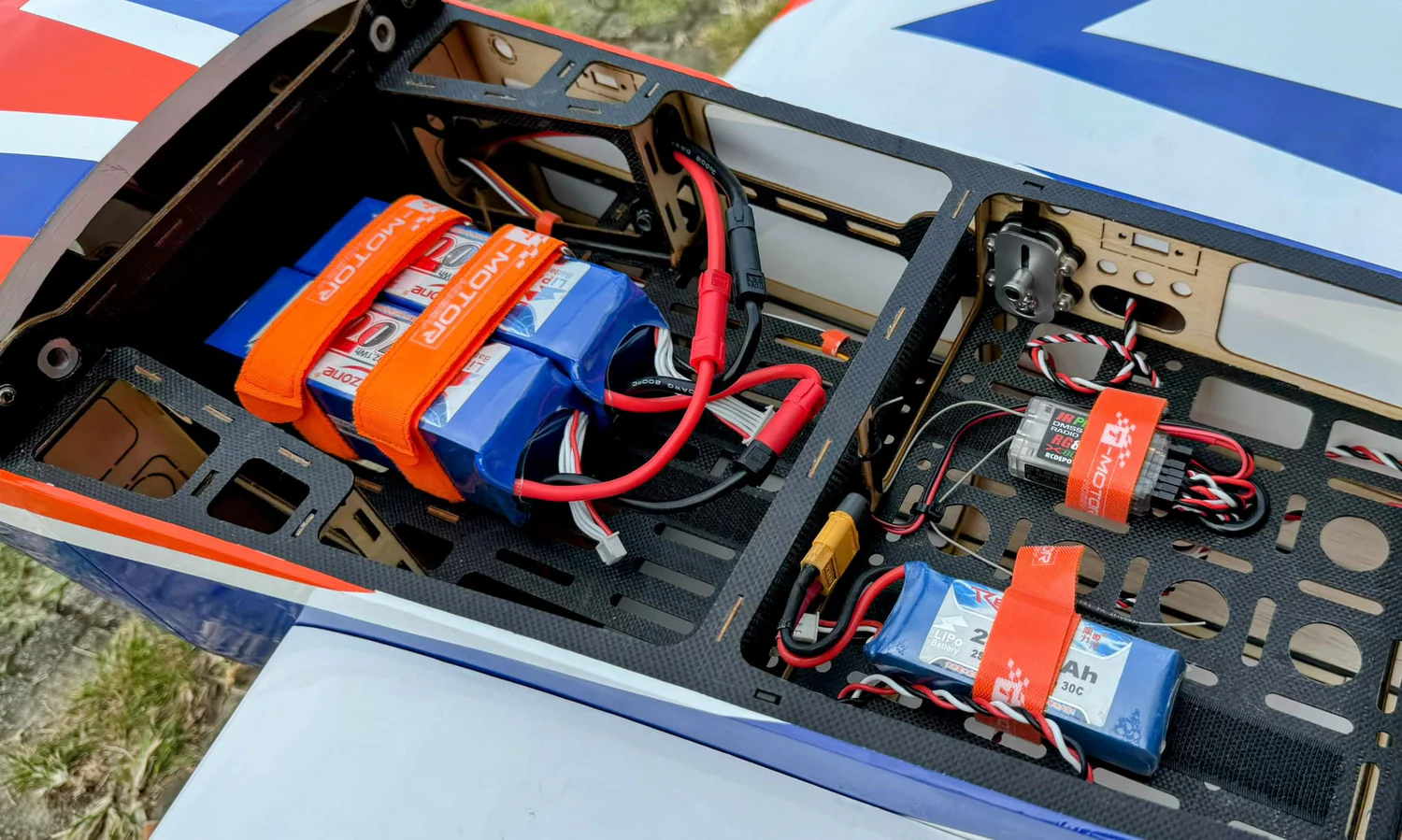 シングルシリンダーガソリンエンジン、ツインシリンダーガソリンエンジン、そして12S(3700mAh)3500Wの電動まで、さまざまなパワーシステムでフライトテスト済み。どのセッティングでもバラスト無しで重心(CG)が適正に取れ、カップリングやウイングロックも非常に少なく、優れた飛行安定性を発揮します。