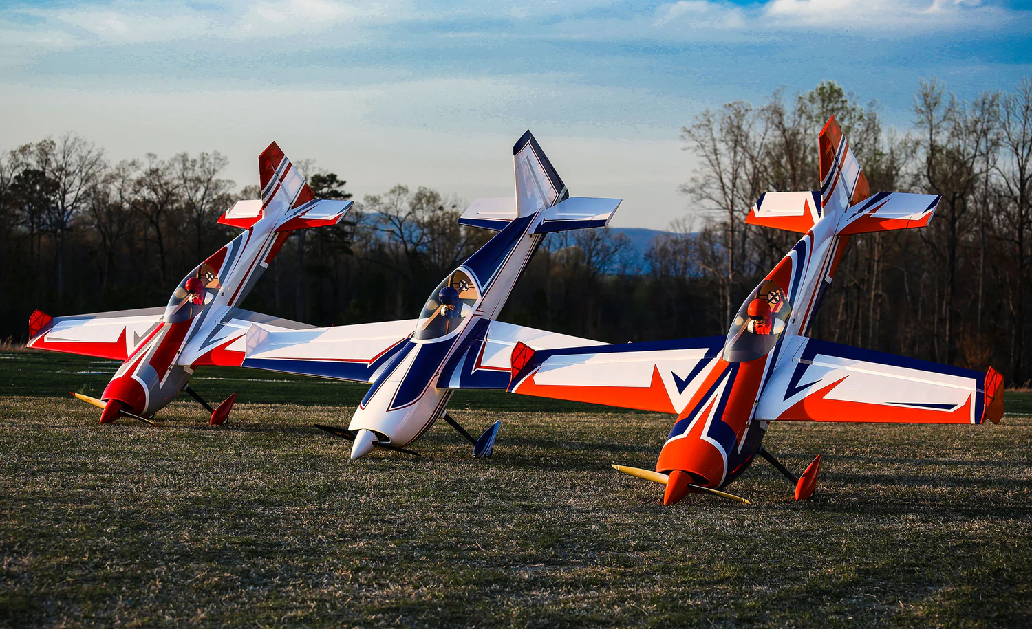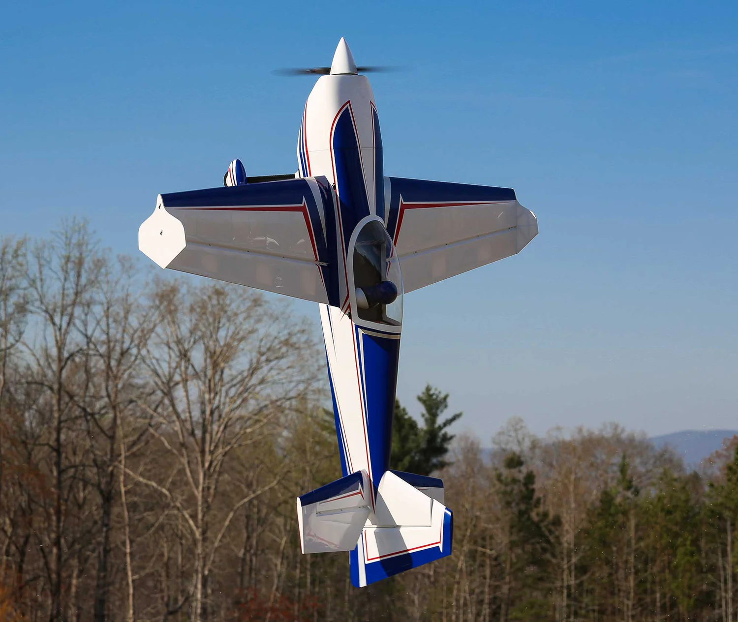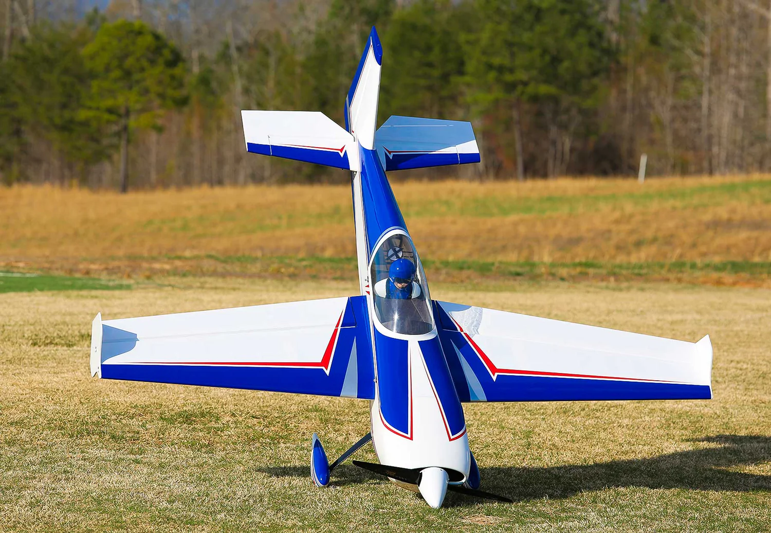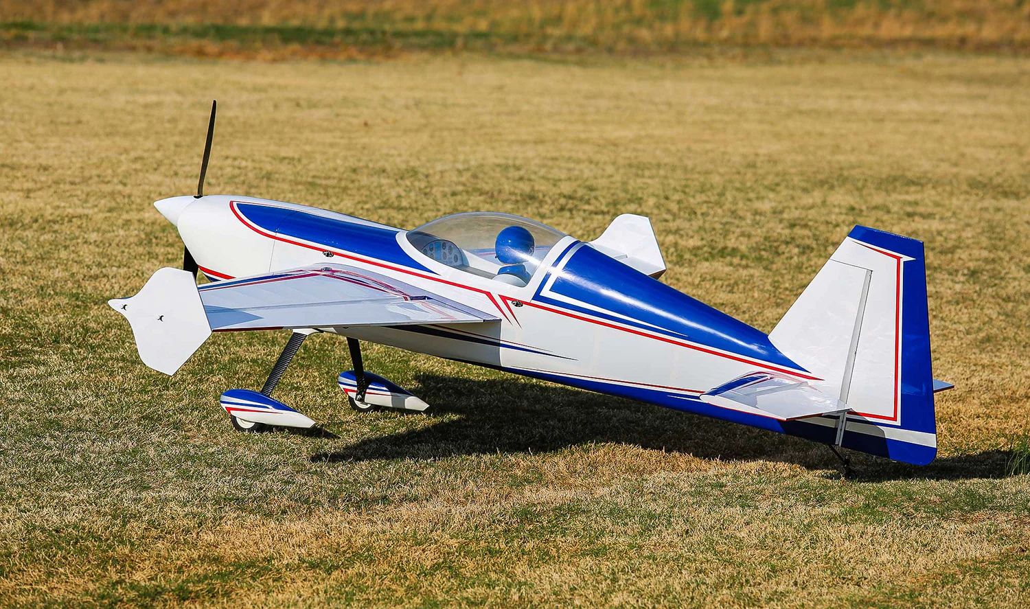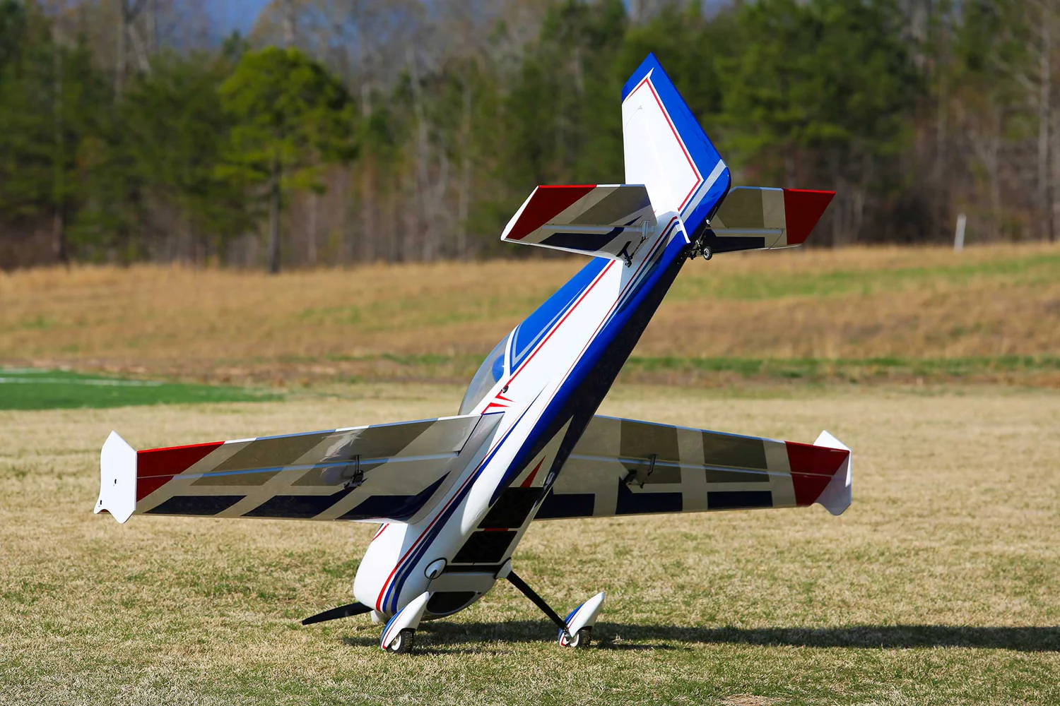 この機体に5つの高品質サーボ(Savox 1280または2290を推奨)と70-76CCツインシリンダーガソリンエンジンを装備すれば、世界クラスのアクロバットマシンが完成します。直線飛行は驚くほどスムーズで、精密なフィギュア飛行も得意。ストール後の3D飛行も非常に操作しやすく、準備が整えば、狂気的なXA飛行にも喜んで応えます。