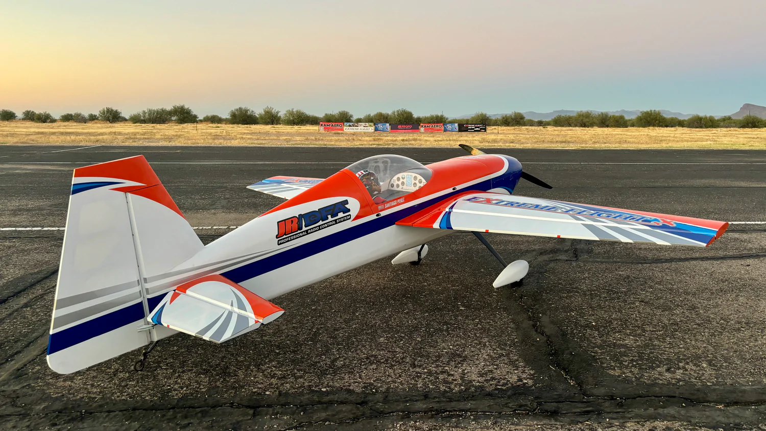 実績あるエクストラ260の設計を基に、170-200ccクラス向けに細部まで調整を重ねました。2024年から2025年にかけ、チームパイロット兼デザイナーのサンティアゴ・ペレス・セケイラが空力特性を完璧にチューニング。2024年秋、彼はテスト機120インチの予備仕様機をツーソン・エアロバティック・シュートアウトで初披露。招待レベルの精密飛行部門初戦で優勝を収めました。2025年7月、最終生産仕様のエアロパッケージとサンティアゴの操縦により、本機は無制限クラスでIMAC全米選手権を制覇。ミッション達成と言えるでしょう。